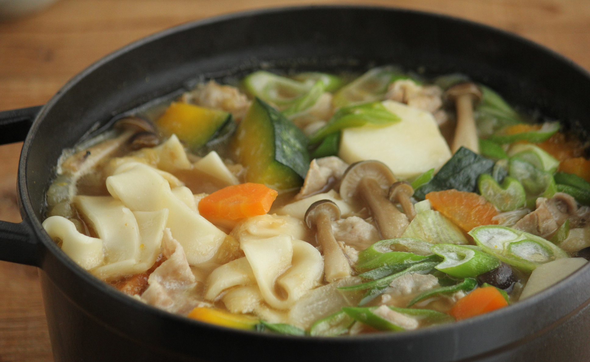 L’okkirikomi de la préfecture de Gunma : l’okkirikomi est un plat d’hiver typique de Gunma. Il s’agit d’une soupe, au bouillon de sauce soja ou bien de miso, dans lequel mijotent des légumes (poireaux, patates, carottes, chou chinois, champignons, radis blancs…) accompagnés de larges nouilles plates appelées himokawa udon.
