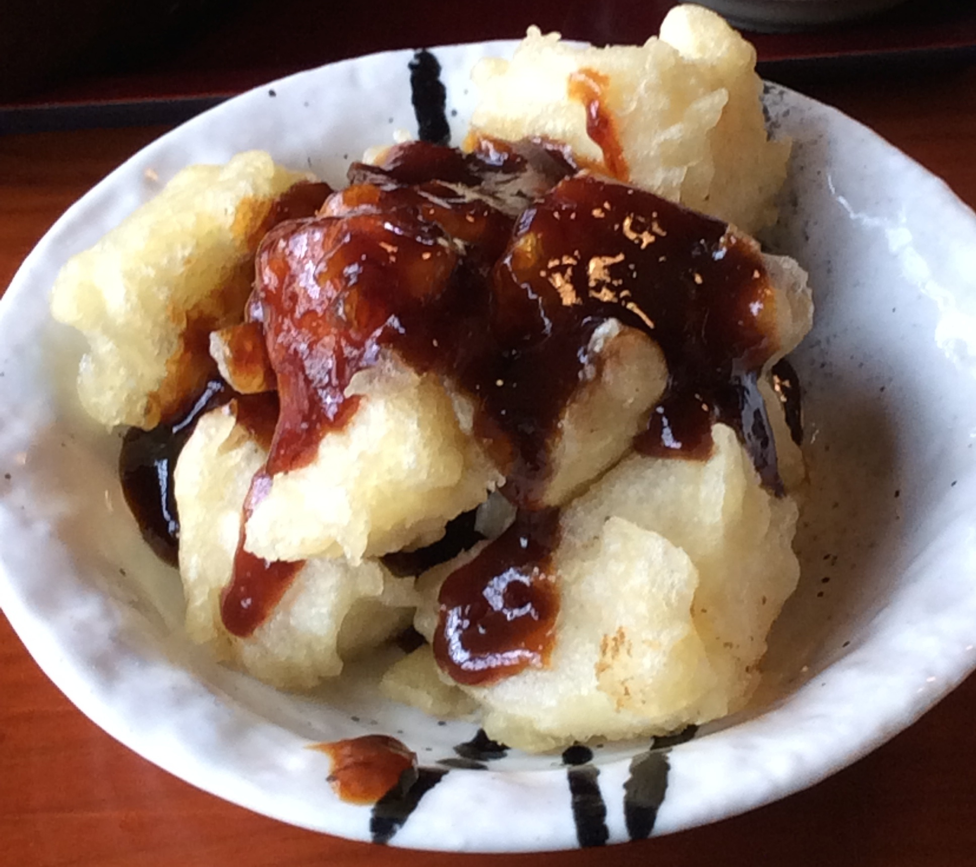 Les miso potatoes de la préfecture de Saitama : originaire de la ville de Chichibu, vous ne serez pas surpris d’apprendre que les principaux ingrédients constituants ce plat sont des pommes de terre et … du miso ! Les pommes de terre sont d’abord découpées en morceaux, puis cuites à la vapeur avant d’être recouvertes de farine et enfin frites. Ces morceaux sont ensuite servis avec une sauce miso, à base de pâte à miso, mirin, sake et de sucre
