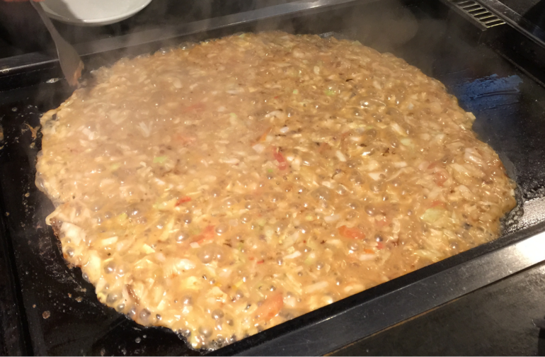 Malgré une base d’ingrédients très similaires, le monjayaki tient davantage de l’omelette que du pancake en raison de sa consistance plus liquide, due à la sauce Worcestershire utilisée