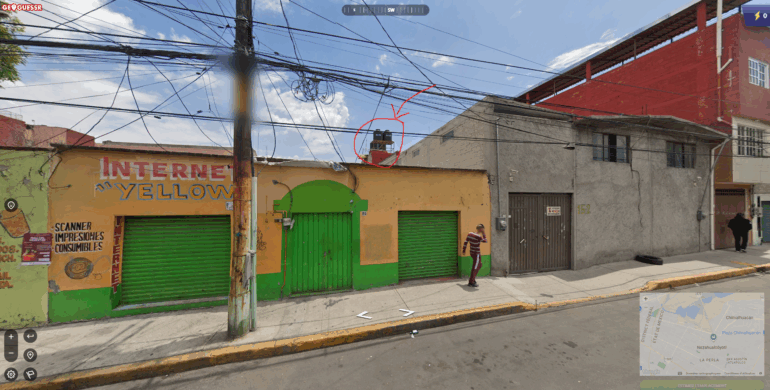 Les bidons noirs sur les habitations, comme entourés en-dessous, est une particularité du Mexique, ce qui nous permet de nous restreindre à ce pays, qui corrobore également la thèse des dollars précédemment identifiés.