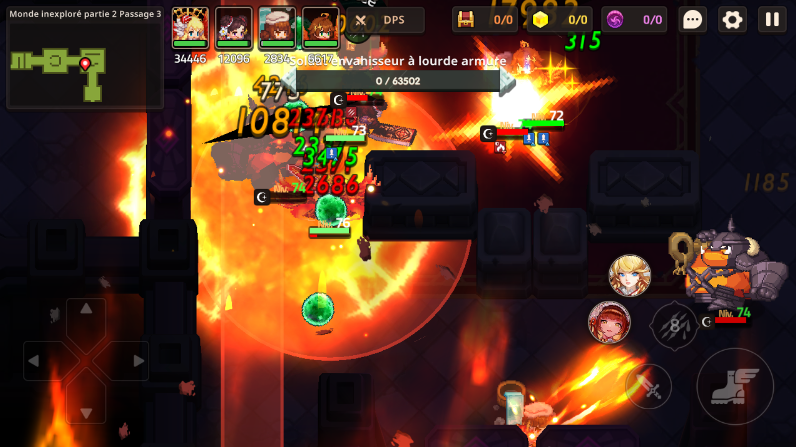 Le fil rouge de base est classique, oui, mais la force de l’histoire de Guardian Tales, va ressortir pendant votre escapade, grâce à un coté comique très présent et bien amené, ainsi que de très, très nombreuses références à la pop-culture, notamment au jeu vidéo et plus particulièrement les vieux Zelda sur GBA, dont ce titre s’inspire beaucoup dans divers aspects. Le chapitre trois par exemple est un énorme clin d’œil à la saga Harry Potter, le chapitre quatre à Mad Max ou encore le chapitre sept à tous les J-RPG d’antan. Bref, un savant mélange super plaisant à suivre, drôle et qui vous amusera de longues heures à trouver toutes les références cachées de-ci de-là.