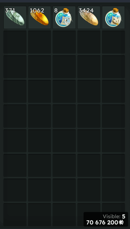 - Je n’ai acheté que des galets, donc je ne sais pas si les autres ressources échangeables en almatons se vendent bien (mais je suis quasi certain que non).