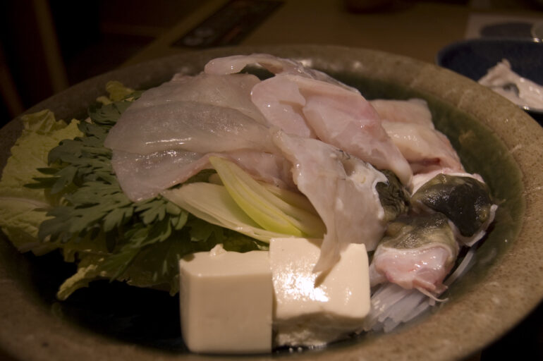 Il s’agit d’une spécialité culinaire japonaise d’Osaka appréciée en hiver, consistant en une fondue composé de fugu (poisson-globe). Le poisson est bouilli dans un bouillon de kombu, souvent servi avec des légumes et du ponzu (sauce à base de jus d’agrumes, à la saveur acidulée, rafraichissante, très appréciée à Osaka).